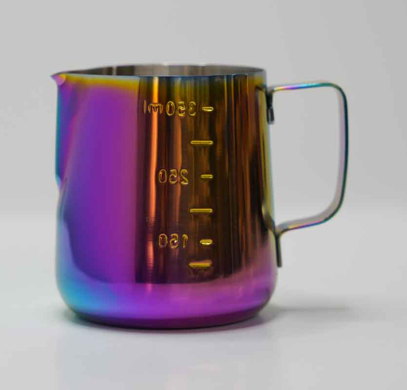 در دنیای قهوه، ابزار حرفه ای فقط یک وسیله نیست؛ بخشی از تجربه و شخصیت شماست. پیچر 350 میلی لیتر مدل هفت رنگ با بدنه ای از جنس استیل ضد زنگ و روکش رنگین کمانی گرادیانی، دقیقا همان چیزی است که سبک خاص شما را پشت دستگاه اسپرسوساز نشان می دهد.